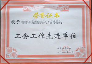·2009年,授予日照興業(yè)集團(tuán)有限公司工會(huì)委員會(huì)工會(huì)工作先進(jìn)單位