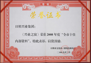 ·2008年,《興業(yè)之窗》被日照市新聞出版局評(píng)為日照市十佳優(yōu)秀內(nèi)部資料
