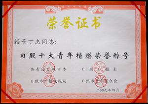·2009年,丁杰董事長(zhǎng)獲得“日照十大青年楷模榮譽(yù)稱號(hào)”