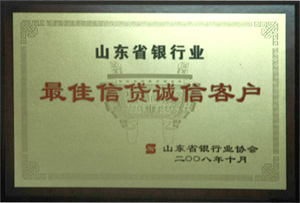 ·2008年10月,被評(píng)為:山東省銀行業(yè)最佳信貸誠(chéng)信客戶