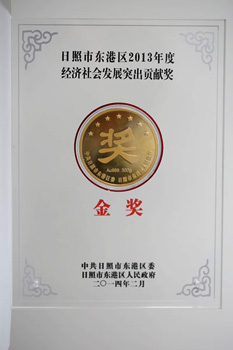 ·2014年2月,興業(yè)集團(tuán)榮獲“日照市東港區(qū)2013年度經(jīng)濟(jì)社會(huì)發(fā)展圖出貢獻(xiàn)獎(jiǎng)”
