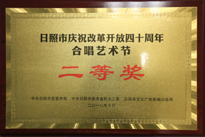 ·2018年10月,日照市慶祝改革開放四十周年合唱藝術(shù)節(jié)二等獎(jiǎng)