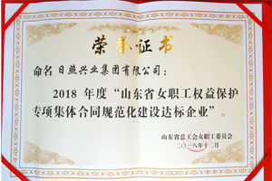 2018年12月,山東省總工會授予日照興業(yè)集團“2018年度山東省女職工權(quán)益保護專項集體合同規(guī)范化建設(shè)達標企業(yè)”