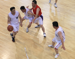 在比賽過程中各支代表隊都發(fā)揮出了極高的水平,為觀眾奉獻了一場場精彩的比賽。尤其在9月20日上午的交叉賽中,興業(yè)汽配代表隊與天泰鋼結構代表隊勢均力敵,比賽中雙方比分交替上升,離結束還有不到20秒時,汽配代表隊61:58領先3分并持有球權,此時汽配隊員的心理感覺穩(wěn)操勝券,一個不經意的走步把球權送給對手,離結束不到2秒,鋼構中鋒馬沖順勢強攻,一記精準的3分遠投, 將比分追成61平,使比賽拖進加時。在加時賽中,汽配中鋒崔冰連續(xù)中投得手,興業(yè)汽配代表隊最終以73:65的比分完勝鋼構,躋身本屆籃球比賽的冠、亞軍決賽。因為天氣原因,9月20日下午的半決賽、決賽和驥翼組籃球表演賽改在日照一中室內籃球場舉行。半決賽、決賽異常激烈,特別是在興發(fā)和汽配之間進行的決賽,展示了興業(yè)集團籃球的實力和水平,興發(fā)隊員們一次次嫻熟的配合,一個個精彩的扣籃,不時獲得現(xiàn)場觀眾的陣陣喝彩和掌聲。集團驥翼隊與興發(fā)驥翼隊的籃球表演賽同樣上演了群雄大戰(zhàn),集團驥翼隊在王建國總經理帶領下,抗拒了體力不足,堅持打滿全場,最終以44:44的比分和興發(fā)驥翼隊握手言和(因屬表演賽不再加時),也宣告興業(yè)集團第五屆職工運動會籃球比賽鳴金收兵。
