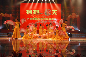張開堅(jiān)定的臂膀 擁抱希望的春天 “擁抱春天”興業(yè)集團(tuán)2009年春節(jié)聯(lián)歡晚會(huì)隆重舉行 鼠去牛來辭舊歲,龍飛鳳舞慶新春。1月17日,“擁抱春天”興業(yè)集團(tuán)2009年春節(jié)聯(lián)歡晚會(huì)在日照廣播電視演播大廳隆重舉行。丁杰、王建國、韓金軍、趙文強(qiáng)、劉永漢、申作華、李春賢等領(lǐng)導(dǎo)和集團(tuán)工作標(biāo)兵、先進(jìn)工作者,及各分公司的職工代表500多人歡聚一堂,一同興致勃勃地觀看了演出。 整臺晚會(huì)在歡快、精彩、喜慶的歌伴舞《歡天喜地》中拉開了帷幕。旋律優(yōu)美的歌舞器樂表演《日照,我眷戀的故鄉(xiāng)》,深情的表達(dá)了興業(yè)人對家鄉(xiāng)的熱愛;公司王鵬的獨(dú)唱《今天》唱出現(xiàn)代人對生活的執(zhí)著追求;興業(yè)房產(chǎn)的姑娘們自編自演的舞蹈《趕!,惟妙惟肖的表現(xiàn)出了海邊人的趕海樂趣。小品《牛老板買房》來源于生活、取材于銷售工作,通過小品中的牛老板對銷售人員的現(xiàn)場考驗(yàn),進(jìn)而義無反顧的買興業(yè)房子這一主題,再現(xiàn)了興業(yè)房產(chǎn)旨在用服務(wù)贏得客戶,用真誠打動(dòng)業(yè)主,堅(jiān)持走品牌戰(zhàn)略的路線,小品演員逼真到位的表演逗的臺下的觀眾捧腹大笑;興業(yè)房產(chǎn)副總許愛華和興業(yè)世紀(jì)嘉園社區(qū)阿姨們帶來的太極拳和劍術(shù)表演,剛?cè)岵?jì),相得益彰,展示了人們對中華武術(shù)的傳承與喜愛;激昂高亢的男聲獨(dú)唱《愛不愛我》唱出了年輕人的激情,唱出了年輕人的執(zhí)著;小品《以愛的名義》講述了一名興業(yè)員工和他的妻子在汶川大地震發(fā)生后,無私捐款的感人故事,展示了興業(yè)員工崇高的精神境界;情到深處,臺下的觀眾無不為之潸然淚下。詩歌朗誦《讓抗震精神永遠(yuǎn)激勵(lì)我們向前》將整臺晚會(huì)推向了高潮,通篇道出了興業(yè)人在汶川發(fā)生震災(zāi)后,積極捐款、捐物、獻(xiàn)血、生產(chǎn)救災(zāi)板房、赴川援建、幫助災(zāi)區(qū)同胞重建家園的感人場景,表現(xiàn)了興業(yè)人在國家災(zāi)難面前一馬當(dāng)先、甘于奉獻(xiàn)的高度社會(huì)責(zé)任感。京韻大鼓《重整河山待后生》表達(dá)了對災(zāi)區(qū)的美好祝愿;歌曲《中國龍》表達(dá)了興業(yè)人的愛國情懷;來自興業(yè)汽配的裴玉用近乎專業(yè)的唱功為大家演唱的歌曲《天路》和青島永杰公司表演的《新疆歌曲串燒》給我們帶來了別開生面的異域風(fēng)情;伴著夢幻般音樂的魔術(shù)《畫中人》,其換衣玄機(jī)著實(shí)讓大家猜摸了一番;歌舞表演《走進(jìn)新時(shí)代》歌頌了中國改革開放三十年的蓬勃發(fā)展,表達(dá)了興業(yè)人對祖國的無限熱愛;本場晚會(huì)的主題歌,原創(chuàng)歌曲《擁抱春天》充分展示了興業(yè)人團(tuán)結(jié)協(xié)作、奮勇拼搏、共度寒冬、擁抱春天的堅(jiān)定信心和美好祝愿,將晚會(huì)再次推向高潮。晚會(huì)最后在《明天會(huì)更好》的優(yōu)美旋律和對新年美好的祝福聲中落下了帷幕。 本場晚會(huì)全部是由興業(yè)集團(tuán)員工自編、自演、自導(dǎo),節(jié)目內(nèi)容健康向上,突出原創(chuàng),充分體現(xiàn)了興業(yè)集團(tuán)優(yōu)秀的企業(yè)文化和興業(yè)員工良好的精神風(fēng)貌。 整臺晚會(huì)歷時(shí)近兩個(gè)小時(shí),節(jié)目精彩紛呈,觀眾喜聞樂見。 據(jù)了解,“擁抱春天”興業(yè)集團(tuán)2009年春節(jié)聯(lián)歡晚會(huì)將于春節(jié)期間在日照電視臺各頻道播出,將為全市人民奉獻(xiàn)一道精彩的文藝大餐。 |
